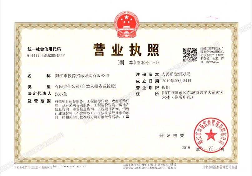 阳江市投源招标采购有限公司是经国家和阳江市政府有关部门批准,于2019年9月成立,依法从事招标代理业务的专业机构。被国家和省市行政主管部门授予的专业资质有:中国政府采购代理机构及广东省政府采购代理机构资格、国际招标、建设工程招标代理资格、药品和医疗器械招标代理资格等。
